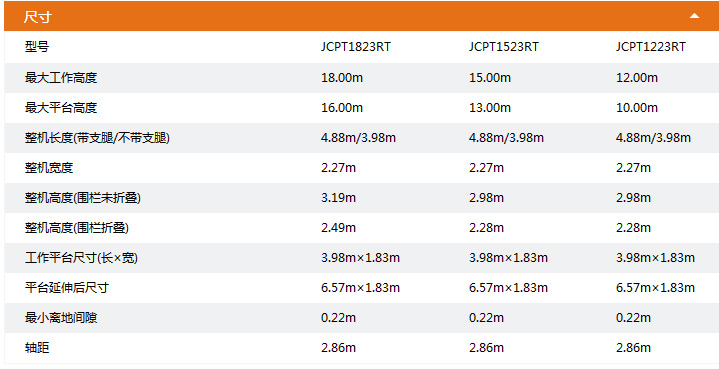 ● 工作高度:18.00m,15.00m和12.00m