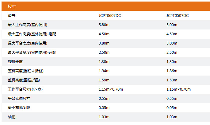 ● 工作高度:5.80m和5.00m